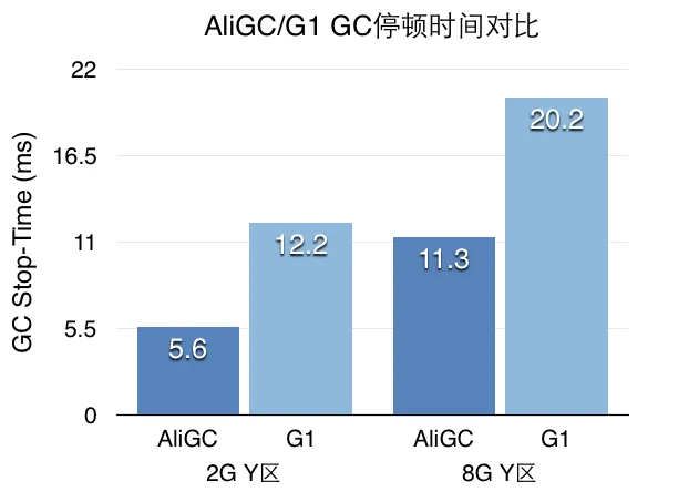 经过以上两个大的优化之后,蚂蚁风控生产环境的young GC时间已经缩减到15ms。由于ParNew+CMS算法在这个尺度上再做优化已经很困难了,我们转而投向AliGC的怀抱。AliGC在G1算法的基础上做了深度改进,内存自管理的大堆HBase和AliGC产生了很好的化学反应。