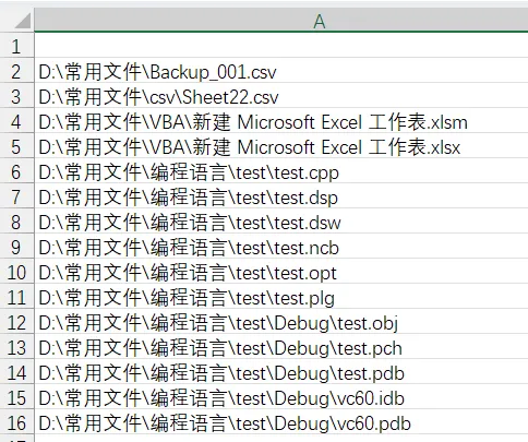 Sub GetAllFilesByFSO() Dim fso As Object Dim startFolder As String ' 1. 设置要遍历的起始文件夹路径 startFolder = "D:\常用文件" ' 请修改为你的目标路径 ' 2. 创建FileSystemObject对象 Set fso = CreateObject("Scripting.FileSystemObject") ' 3. 调用递归函数开始遍历 Call TraverseFolder(fso.GetFolder(startFolder)) MsgBox "遍历完成!结果已输出至活动工作表A列。"End Sub