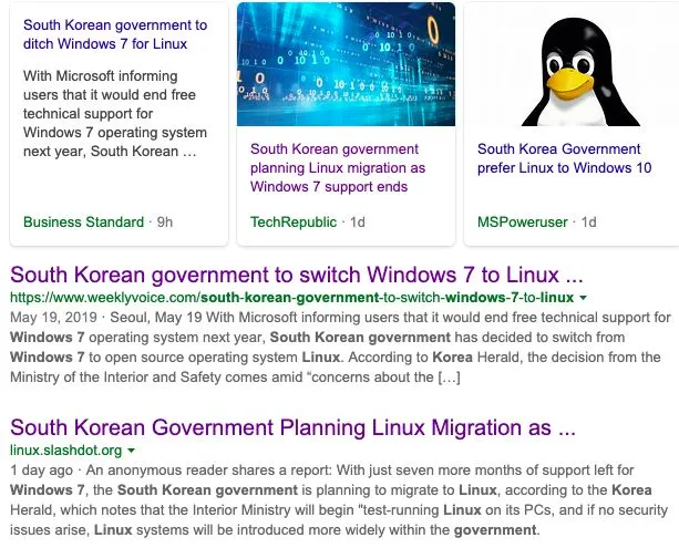 5 月 18 日,多家外媒援引《韩国先驱报》的报道,韩国政府计划将办公使用的操作系统,由 Windows 7 改为 Linux。