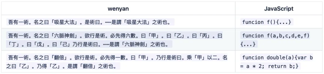 当然,Python 作为一种极其精简的语言,真正用它来写斐波那契数列肯定代码量要少很多。不过,借助这段翻译,理解文言文编程还是要简单很多的。如果读者想要试一试,可以复制这个 GitHub 项目,并在本地编译,也可以直接使用在线 IDE 编译你的代码。下面,作为一种「新语言」,我们当然要了解它的神奇语法,不论是定义变量、函数,还是生成数列,文言文都有对应的语法。考虑到文言文和其他编程语言的转换有一定的理解难度,作者提供了一些语法转换规则表,供参考。看厌了黑底的代码?项目还提供了一个炫酷的「古文代码生成器」,我们可以把自己的文言文代码转换成古书中从右到左,从上到下,没有标点的古文。是不是更有 B 格了?这个生成器还有 SVG 文件,可以将代码再提取出来,重新运行。机器之心将于 12 月 21 日举办 NeurIPS 2019 上海 MeetUp,包含了多篇论文报告与星际争霸游戏 AI Demo,欢迎感兴趣的读者点击阅读原文报名参与。