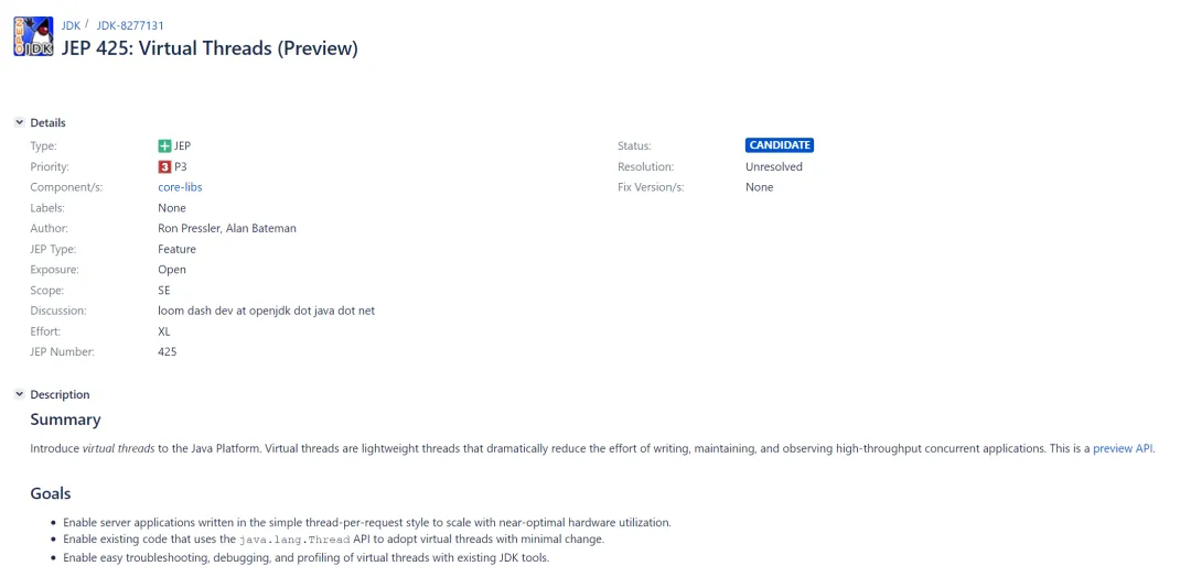 有关虚拟线程的更多信息可在 OpenJDK 的 JDK Issue-8277131 中查看,目前该提案于 2021/11/15 创立,目前还处于 JEP 流程的第一阶段,距离稳定版本还需要一段时间。程序员面试技巧?