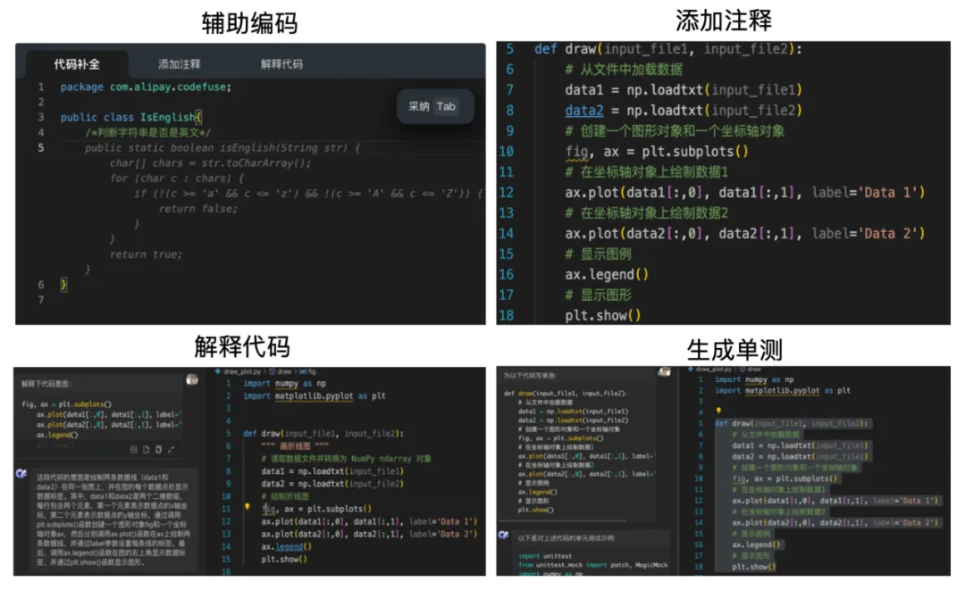 (CodeFuse IDE插件的代码生成功能(部分))Gartner发布的2024年十大战略技术趋势也指出:到2028年,75%的企业软件工程师将使用AI编程助手。放眼未来,在助力企业研发板块“降本增效”的同时,代码大模型将更大程度地解放技术人员,让他们专注于更高维度的创造工作。从当前的AI编程实践来看,代码大模型正沿着两个方向演进。一条路是不断提高代码生成能力,做好程序员编程智能辅助工具。代码生成、补全、解释与转换能力,从行级到片段到仓库级不断进化。在生成代码时,支持多轮对话式需求理解,支持自然语言、语音、图生代码等多模态指令理解,这也是包括GitHub Copilot在内的AI编程平台在主攻的方向,它们基于云提供SaaS服务或插件工具,着重于助力程序员提高代码编写的效率和质量。另一条路则是让AI渗透到研发的全生命周期,重构研发体系。软件开发涉及到需求分析、编程开发、测试与构建、发布与运维、数据洞察等链路。每一个链路都需要使用大量的专业工具,且与上下游研发链路进行协作。理论上来说,所有研发工具都可以被AI重做一遍,软件研发范式(包括工具链、协作流程、项目管理方法、设计模式等等)都将被重构。在国内,蚂蚁CodeFuse 是AI全⽣命周期研发的首倡者和积极探索者。在内部,蚂蚁已将⼤模型技术应⽤在研发的全链路环节,在CodeFuse的版图中,在需求阶段,Project Copilot提供多场景开发助手,提供需求/设计文档智能生成等服务;在开发、测试、运维和数据环节,分别提供Code Copilot(IDE插件)、Test Copilot、Ops Copilot、Data Copilot等AI研发工具,大幅提高对应环节研发人员的工作效率。CodeFuse 在蚂蚁内部被大规模应用在工业化生产场景,经过反复验证与迭代后再以开发助手、IDE插件、AI Native IDE、Open API、开源等形式开放给行业,同时也针对小程序开发等特殊场景定制了AIGC方案。