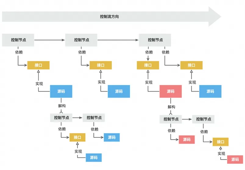 控制流对于过程的解构其实就是一个递归的过程,逐步将长流程解构为一个个独立存在,保证可扩展性的流程子节点。