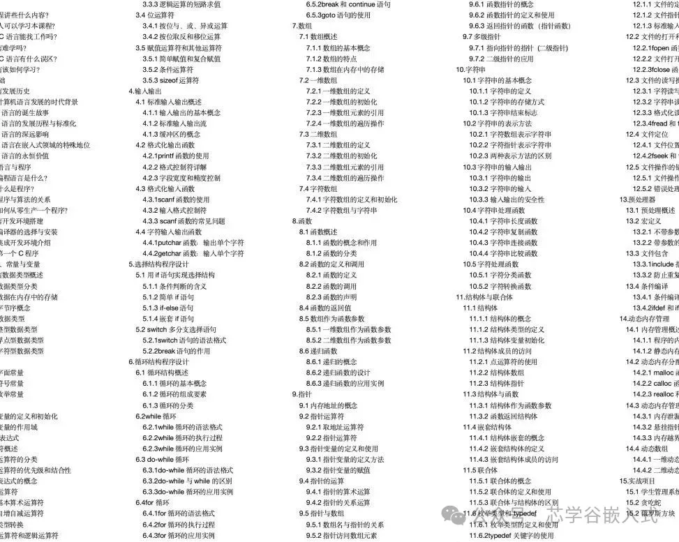 还不熟悉C语言,这里可以先领取一份免费的C语言电子书,目录如下: