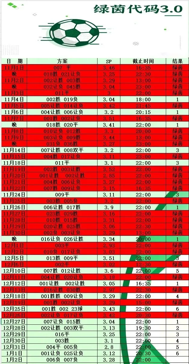 1月2日绿茵代码3.0计划 今日已更新