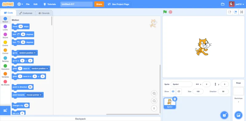 Scratch图形化编程,只需要拖拽各个模块就可以让右边的猫猫做出特定的动作,这种编程更像是学习流程图丨Wikimedia Commons