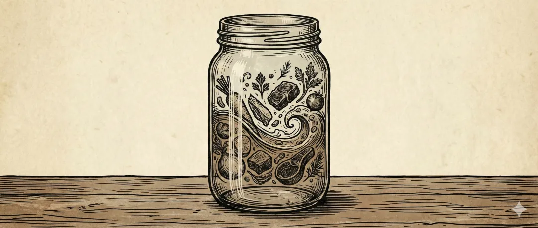 一罐汤自豪地说:“看我多么丰富深邃,我有胡萝卜、牛肉和深不见底的汤汁。”