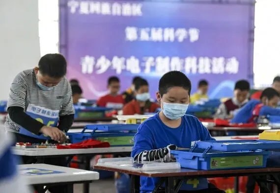 学生在参加青少年电子制作锦标赛,图源:新华社 (冯开华 摄)
