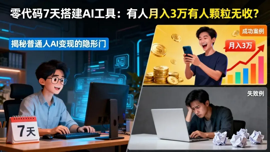 零代码7天搭建AI工具:有人月入3万有人颗粒无收?揭秘普通人AI变现的隐形门