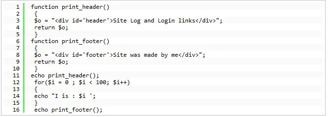 替代方案,在某地方集中收集输出。你可以存储在函数的局部变量中,也可以使用ob_start和ob_end_clean。如下: