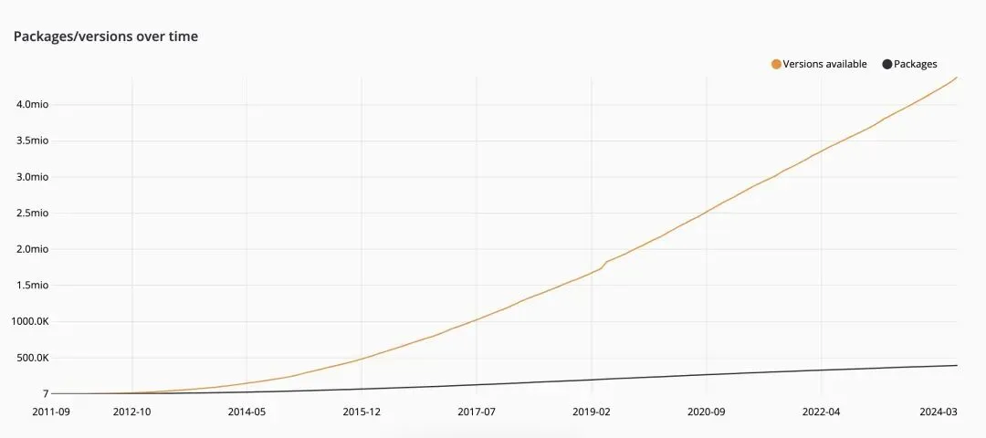 PHP 生态系统也在不断增长:软件包不断增长,表明生态系统活跃。