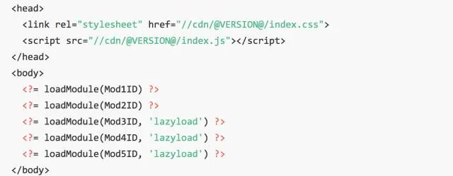 通过模块 id 将模块引入,并且添加一些类似 lazyload 的标记,方便控制渲染节奏和数据入口。源码搭建和模块搭建的区别在于,前者更易于控制模块的结构以及模块的渲染顺序。