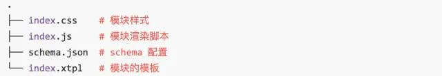 搭建平台通过这个 JSON Schema 解析成 图一 的坑位。那么一个模块的渲染就编程了 index.xtpl 和挖坑数据之间的拼装了。