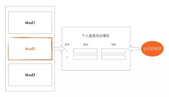 搭建平台通过这个 JSON Schema 解析成 图一 的坑位。那么一个模块的渲染就编程了 index.xtpl 和挖坑数据之间的拼装了。