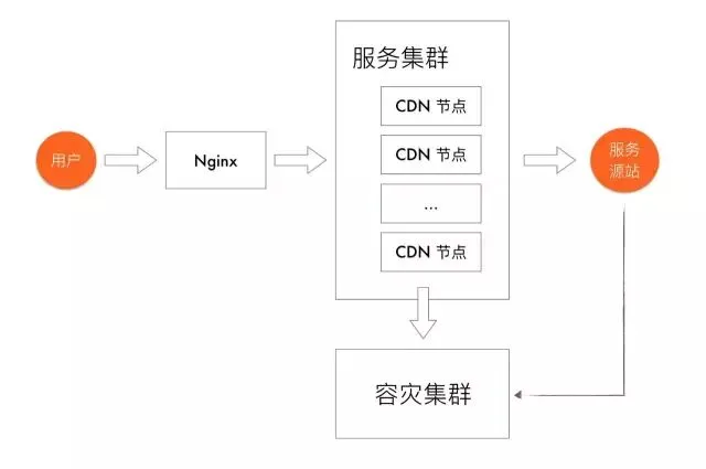 它的优势有很多,这里不一一列举了。这个模式中还添加了一层容灾,源站服务器每隔一段时间将数据推送到于 Cache 同机房的备份服务器,一旦源站挂了,还能够自动容灾到备份数据上。
