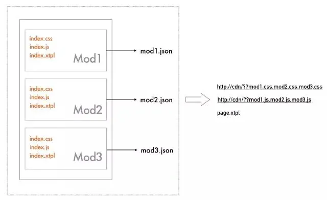 模块之间相互独立隔离,所以会存在一定程度的冗余,不过模块解偶带来的收益要比这点冗余要多得多。事实上,我们是通过一个仓库去管理单个模块的。页面的渲染就比较简单了,源站 Node 容器会将所有的 index.xtpl 合并成一个 page.xtpl,为减少页面请求,css 和 js 也会 combo 成一个文件,如上图所示的 http://cdn/??mod1.css,mod2.css,mod3.css。