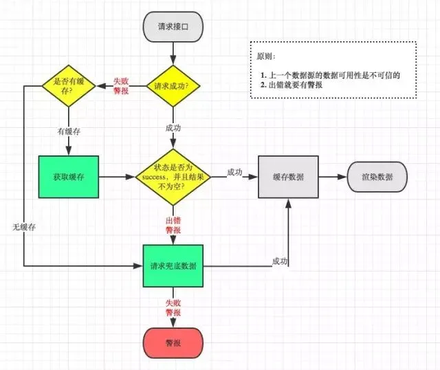 每次数据请求都缓存到本地,并且为每个接口都提供一个硬兜底。还有一种方案是「重试」,请求一次不成功那就请求第二次。这方面的讨论具体可以看看之前写的这篇文章:《大流量的下兜底容灾方案》(http://www.barretlee.com/blog/2015/09/16/backup-solution-at-big-traffic/)。