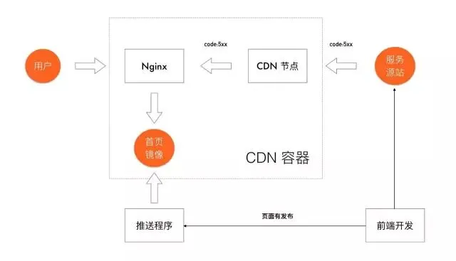 一旦源站任何异常,Nginx 都会转到与 Cache CDN 同机房的首页镜像上去,这个镜像内容就是淘宝首页的 HTML 备份源码。