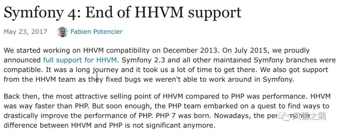 (Symfonyu宣布鉴于PHP7性能提升明显,放弃HHVM的支持)