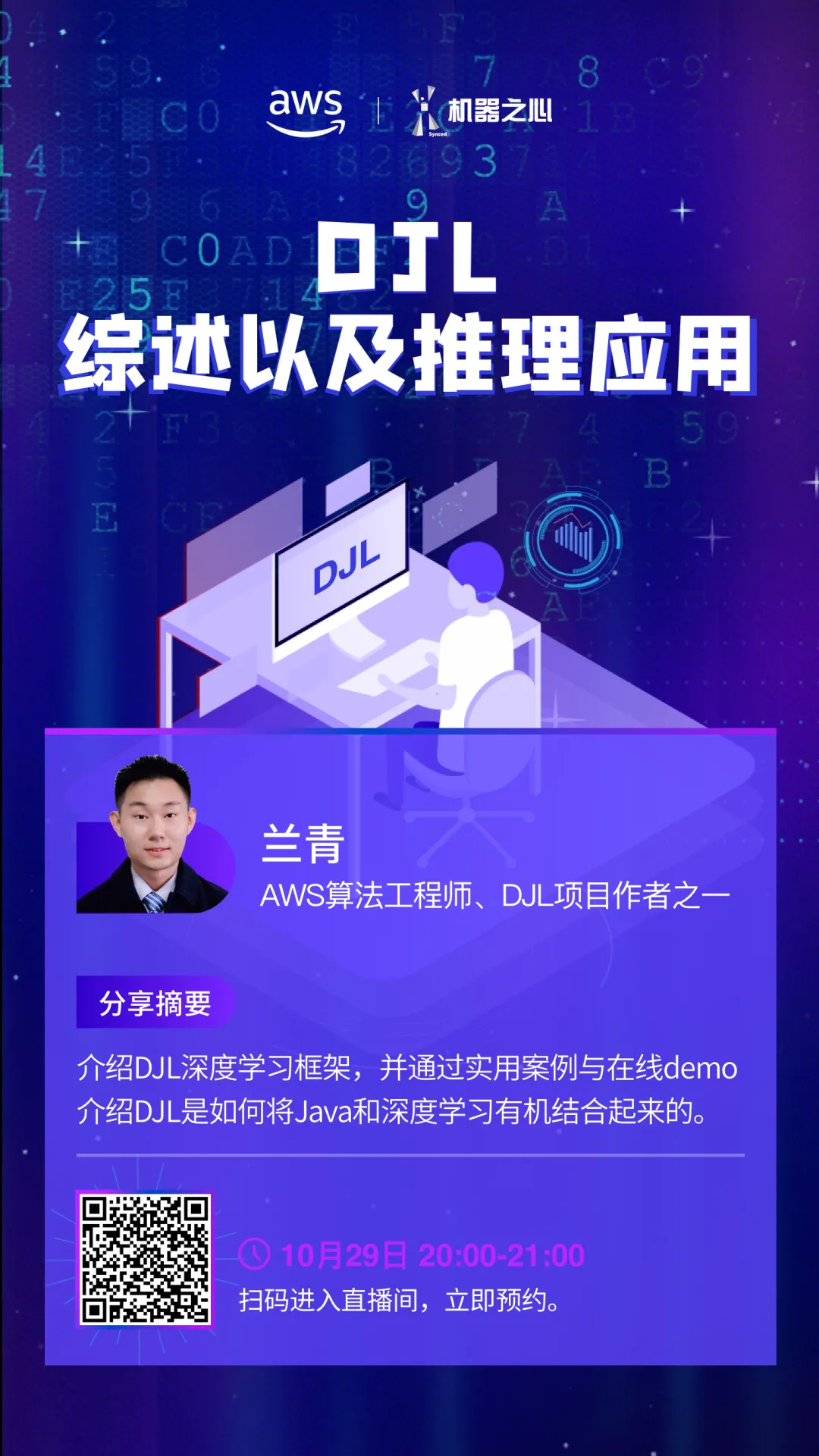 讲师简介:兰青,AWS算法工程师,硕士毕业于美国哥伦比亚大学, 本科毕业于英国利物浦大学。兰青是DJL深度学习框架的作者之一,也是 Apache MXNet PPMC成员之一,精通深度学习框架架构以及Java开发, 致力于研究并解决用户在机器学习推理和训练中遇到的难题。