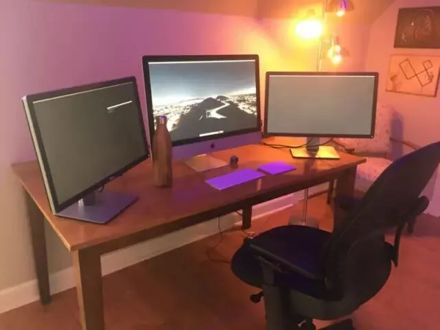 我用来开发的机器主要是一台5k 屏 iMac,处理器 4 Ghz、RAM 16 GB。iMac 两边各放一台 24 寸 4k 显示器。我把两边的显示器背景调为深灰色,这样当我没在用时,它们看起来像是关闭的,不会很刺眼。
