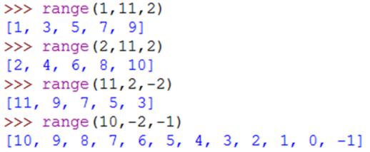 说明:range( )函数会产生1个包含所有等差数列级数k的列表,k每次递增step,step不能为0,可正可负