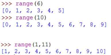 range(start,end):当提供2个参数时,step为1,range( )函数返回从start到end的数列。