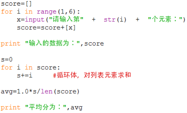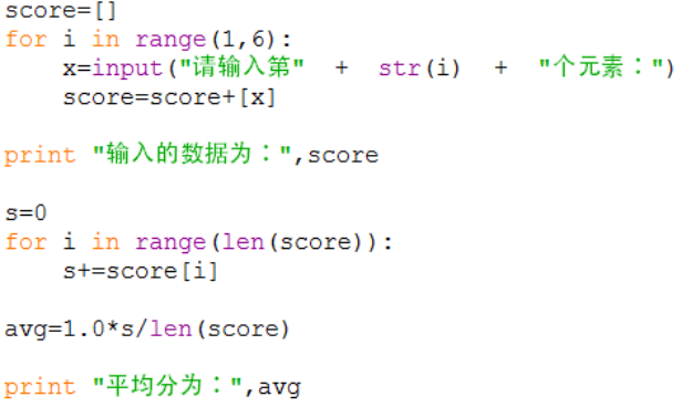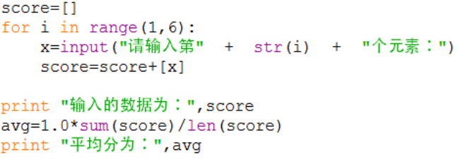 【示例1】通过输入,创建1个由5个分数构成的列表,求出所有分数的平均分。