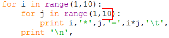 【示例3】使用for循环的嵌套结构打印“九九乘法表”