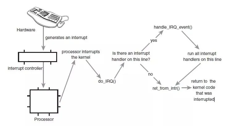 从本质上来讲,中断是一种电信号,当设备有某种事件发生时,它就会产生中断,通过总线把电信号发送给中断控制器。