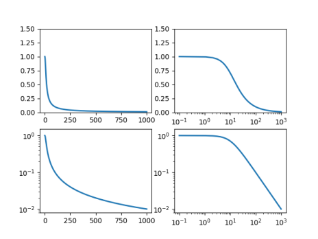 绘制对数坐标图的函数有三个:semilogx()、semilogy()和loglog(),它们分别绘制X轴为对数坐标、Y轴为对数坐标以及两个轴都为对数坐标时的图表。