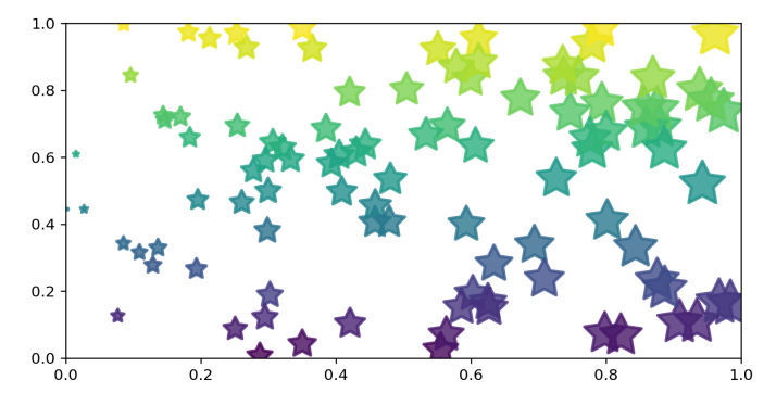 用scatter()所绘制的散列图可以指定每个点的颜色和大小: