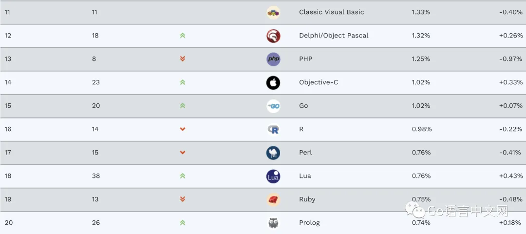 PHP 跌出前 10,Go 机会来了?6 月 TIOBE 榜单