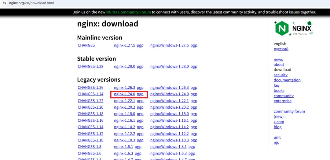 官网下载:https://nginx.org/en/download.html二、解压nginx
