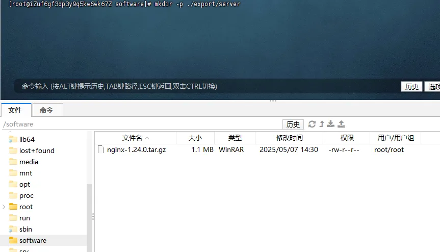 进入到解压后的nginx 目录下/software/export/server/nginx-1.24.0