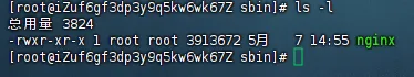 进入到 nginx 安装目录下的 sbin,即是目录 /software/nginx/sbin,查看目录内容。