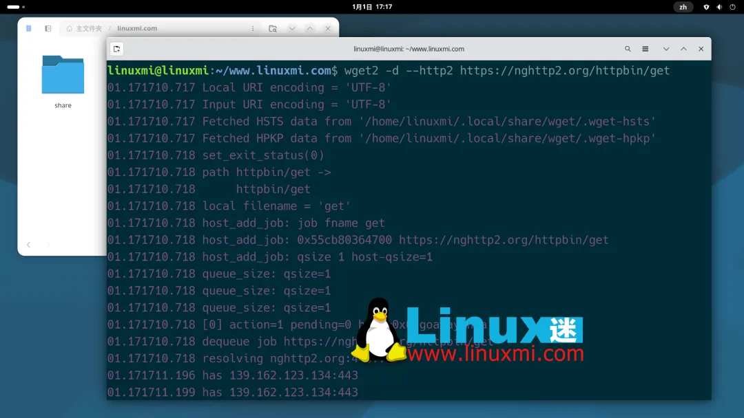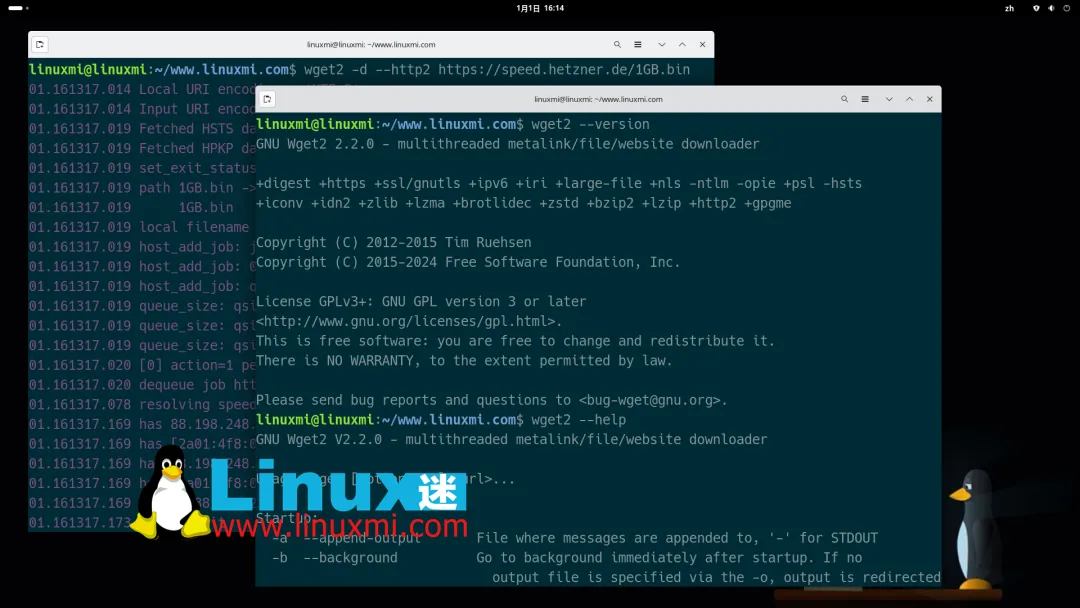 此外,当某些 URL 没有被继续跟随时,程序给出的提示信息也更加清楚,方便排查原因;配置选项现在支持使用 no_ 前缀,写法更直观。在 HTTP/2 测试方面,GNU Wget 2.2.1 引入了对 libnghttp2 库的支持;当服务器返回 403 状态码时,退出状态可以设置为 8,更有利于脚本和自动化任务进行判断。