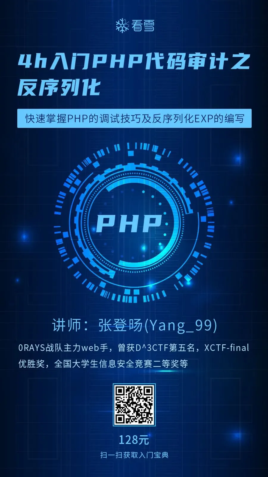 但是这对我们小白来说,可能就是一个“代码审计之从入门到放弃”的悲惨故事,为了满足广大用户的需求,我们最新推出《4h入门PHP代码审计之反序列化》在线课程,帮你快速掌握PHP的调试技巧及反序列化EXP的编写,实战中“避坑”!