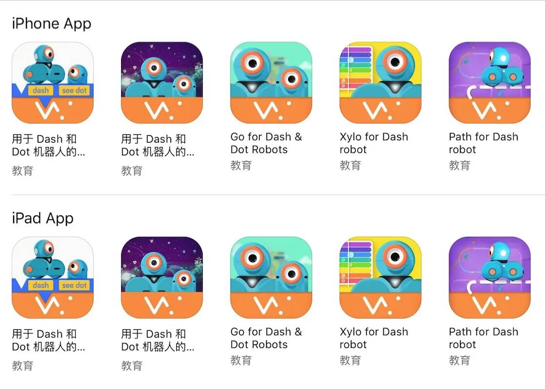 硬件上主要由达奇和一系列可扩展的配件组成,通过5款图像化的 App(Go,Path,Xylo,Blockly和Wonder),孩子们可以自由操纵达奇机器人完成设想的复杂动作。