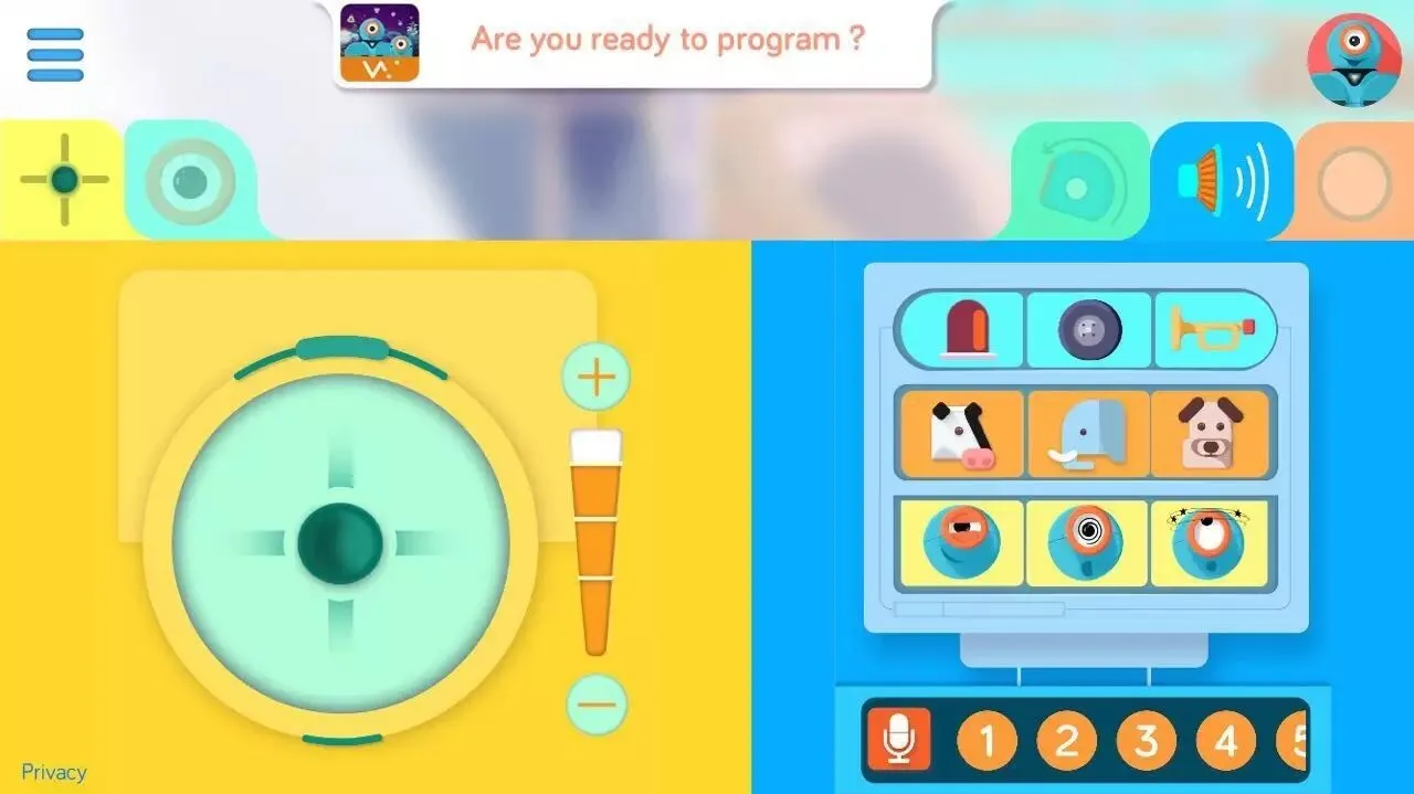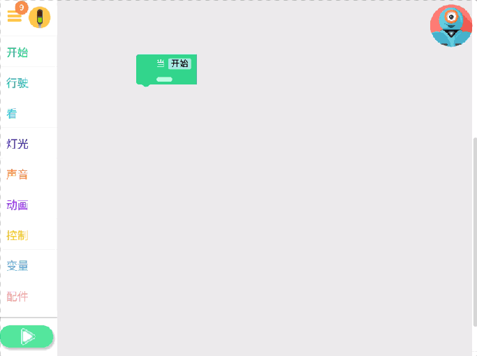 顶部的三个按钮可以通过 App 里的模块化编程,让小孩脑洞大开,自由设定达奇按下按钮后的反应。