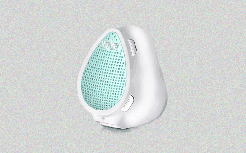 口罩底部有一个按钮,长按3秒即可启动内置的风扇,过滤的空气就源源不断的输送进来。