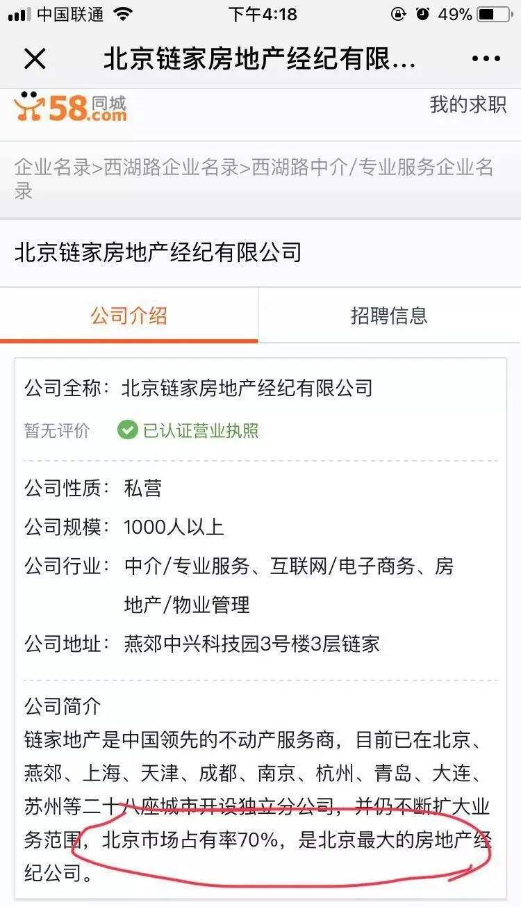 目前市场占有率最高的公司,名叫链家