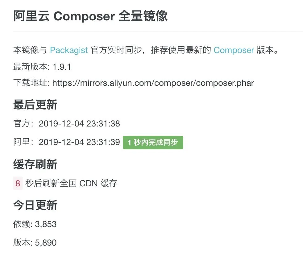 今年七月,阿里云提供了 Packagist/Composer 全量镜像服务,其秒级同步的能力、快速稳定的下载服务、页面上的动态数据展示得到了开发者的一致好评。