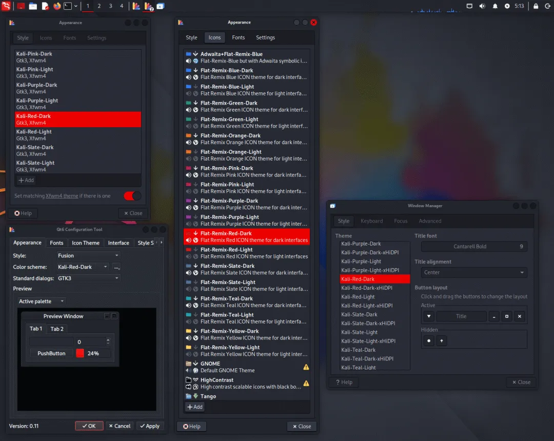 新增完整的颜色主题支持,图标、GTK 3/4窗口和Qt 5/6窗口都能统一调整配色。