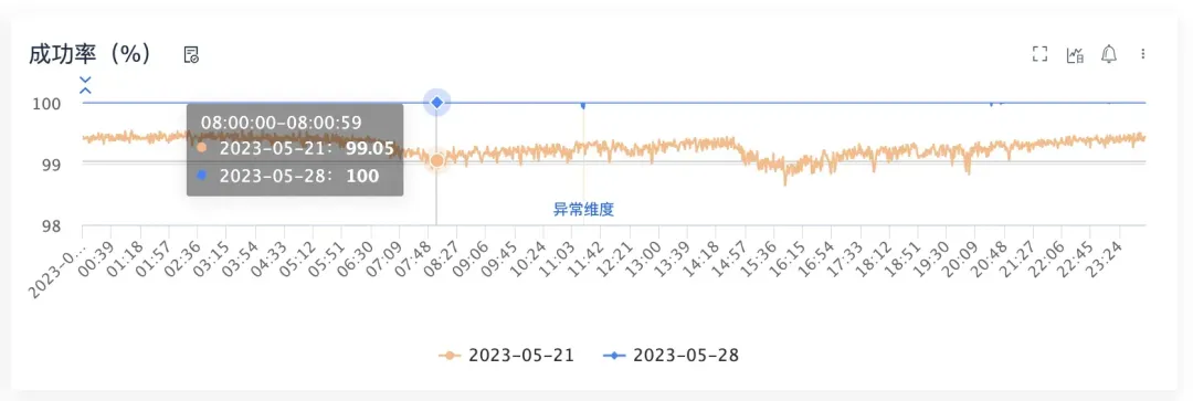 服务稳定性长期在两个九(黄色线):