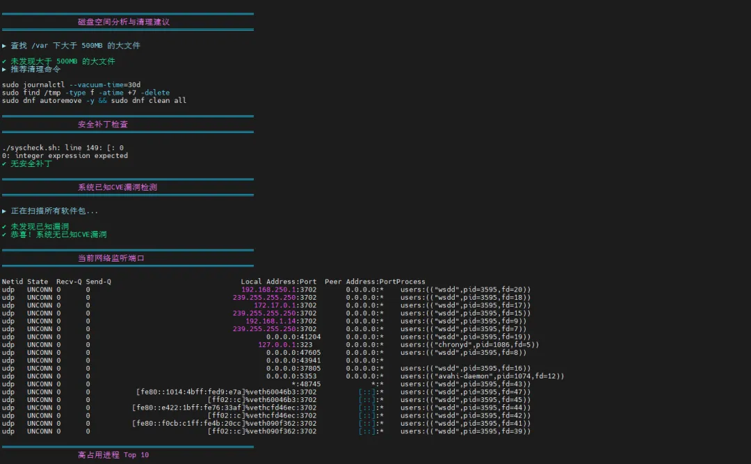 (推荐移动到 /usr/local/bin/syscheck 后全局使用:sudo syscheck)