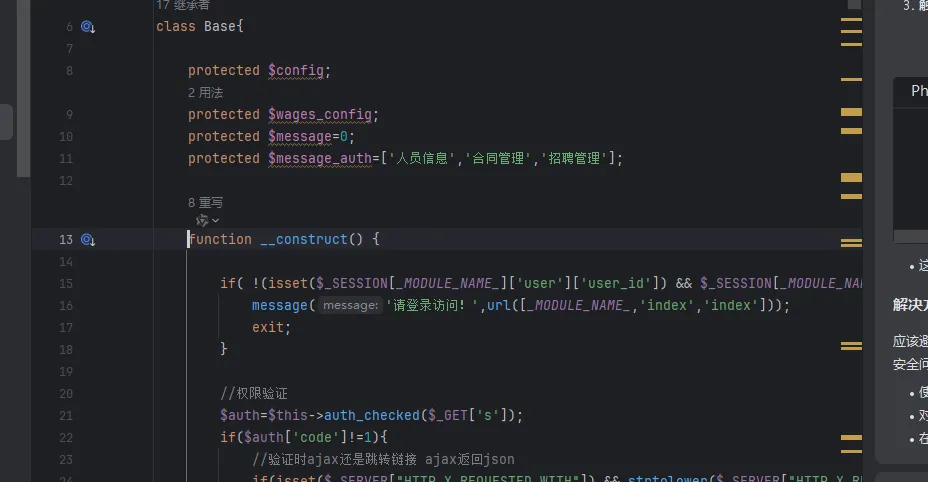 session认证,毋庸置疑了,分析到这里还远远没结束,因为在实际的方法构造触发class的时候,项目中还有通过类继承实现鉴权的