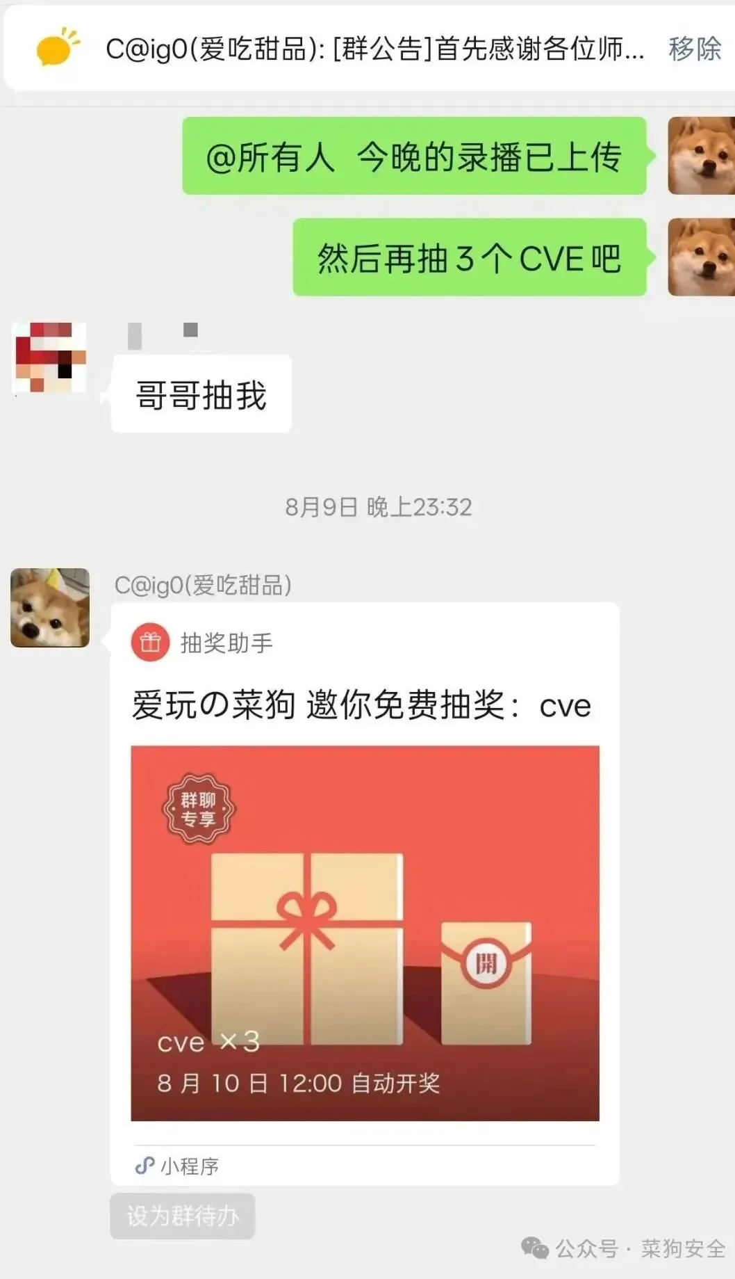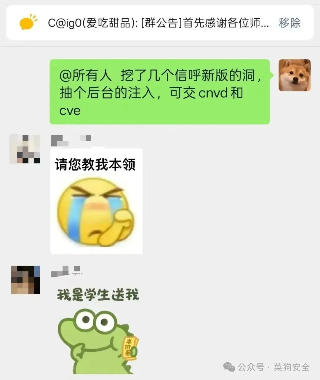 提供的源码仅用于技术学习与研究个人代码审计能力提升,其他使用与作者【C@ig0】以及公众号【菜狗安全】无关,后果请自行承担!!!