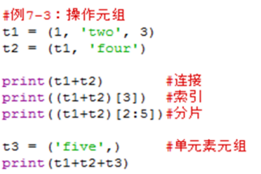 tuple=(元素1,元素2,…元素n) #定义n个元素组成的元组