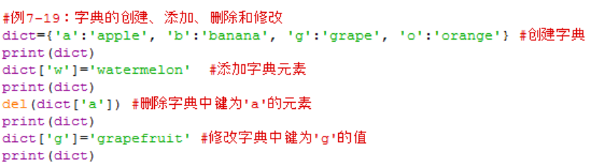 字典的添加、删除和修改只需执行一条赋值语句即可,例如:dict[’x’]=’value’